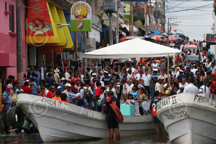 MINATITLAN, VERACRUZ., 04OCTUBRE2008.-Locatarios del mercado 5 de Febrero se instalaron con puestos ambulantes el las calles aledañas al centro de Minatitlan, ya que dicho mercado se encuentra bajo el agua. FOTO: SAÚL LÓPEZ/CUARTOSCURO.COM