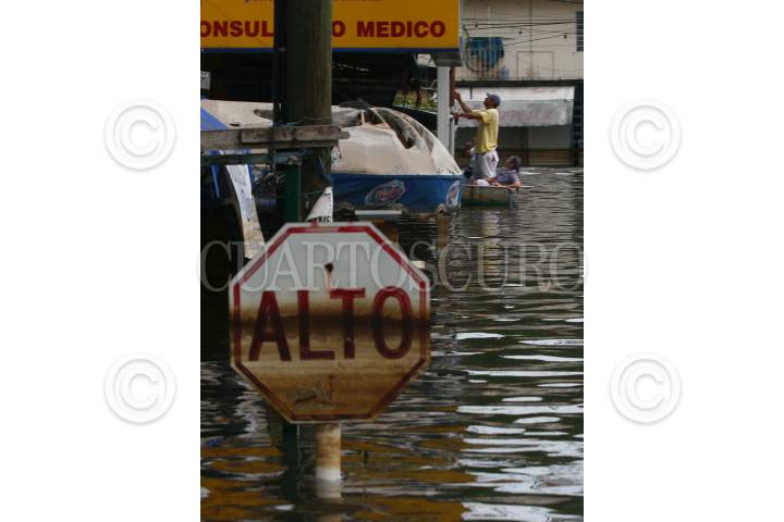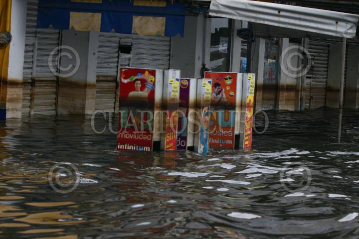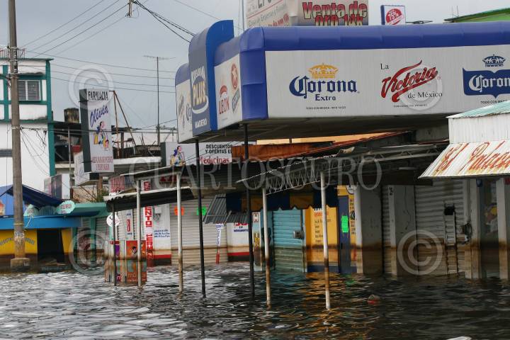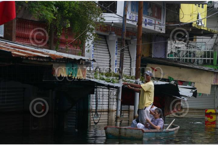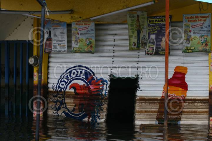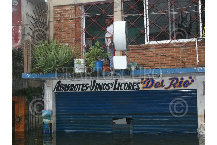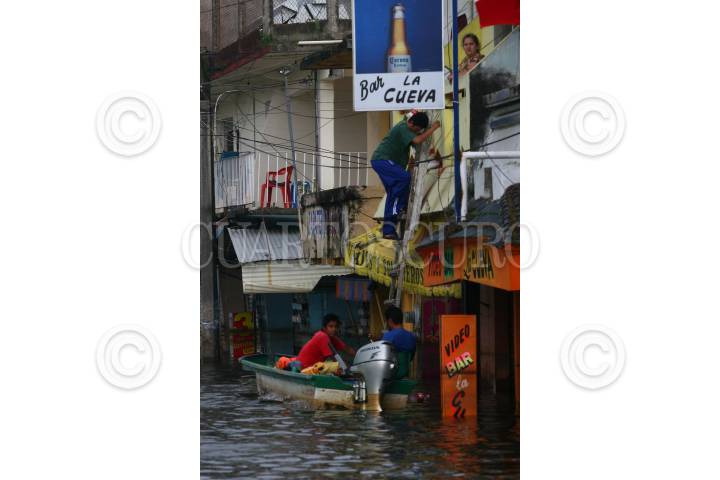 MINATITLAN, VERACRUZ., 03OCTUBRE2008.- Los negocios y las calles del centro de Minatitlan fueron los mas afectados debido al desbordamiento de rios y arrollos aledaños, algunas personas se niegan a salir de sus casas y negocios por temor a que les roben sus pertenencias. Apesar que ya ha bajado el nivel del agua personal de proteccion civil aseguran que sera hasta el proximo año cuando el centro de Minatitlan vuelva a la normalidad. FOTO: SAÚL LÓPEZ/CUARTOSCURO.COM