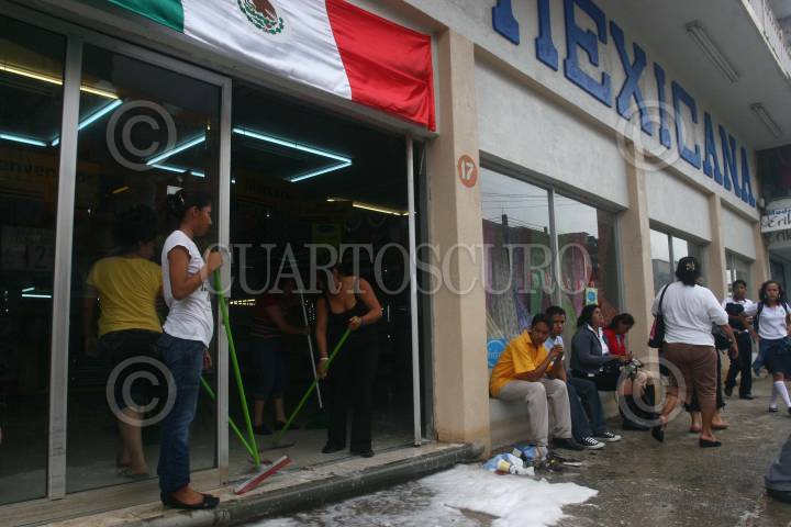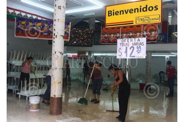 MINATITLAN, VERACRUZ., 04OCTUBRE2008.-Algunos locales del centro de Minatitlan comienzan con la limpiezas de sus establecimientos despues que bajara el cauce del rio que mantenia inundados sus lugares de trabajo. FOTO: SAÚL LÓPEZ/CUARTOSCURO.COM