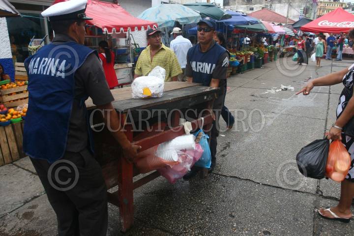 MINATITLAN, VERACRUZ., 04OCTUBRE2008.-Elementos de la Marina ayudan a locatarios del mercado 5 de Febrero a instalarse en calles aledañas al centro de Minatitlan, ya que dicho mercado se encuentra bajo el agua. FOTO: SAÚL LÓPEZ/CUARTOSCURO.COM