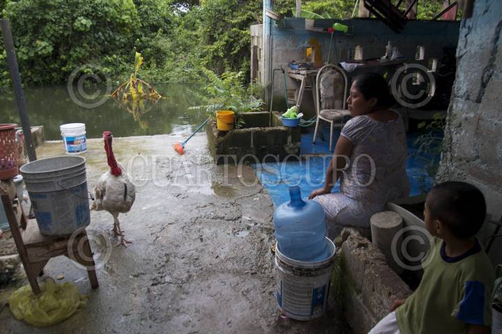 JESUS CARRANZA, VERACRUZ., 04OCTUBRE2008.- Aurea Fernandez nos muestra su casa ubicada a las orillas del rio Coatzacoalcos. Ella nos comentó que la creciente del rio acabo con la mayoria de sus muebles y reservas de comida que tenia almacenado en su modesto cuarto. Aurea vive con sus tres hijos y su esposo. FOTO: SAÚL LÓPEZ/CUARTOSCURO.COM