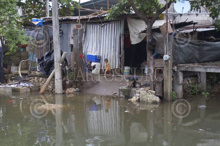 TENOSIQUE, TABASCO, 14SEPTIEMBRE2013.- Las fuerte lluvias por la tormenta tropical Ingrid que se encuentra estacionado en el Golfo de México, provoca que colonias como Pueblo Unido y Luis Donaldo Colosio se inunden además que parte de las afectaciones son originadas por el desborde del río Usumacinta que ya esta por encima de su máxima escala critica. El gobierno local emitió una alerta precautoria también para los municipios de la región de la Sierra y Chontalpa donde indica que prevalecerán lluvias de fuertes a intensas. FOTO: MARCO POLO GUZMÁN HERNÁNDEZ /CUARTOSCURO.COM