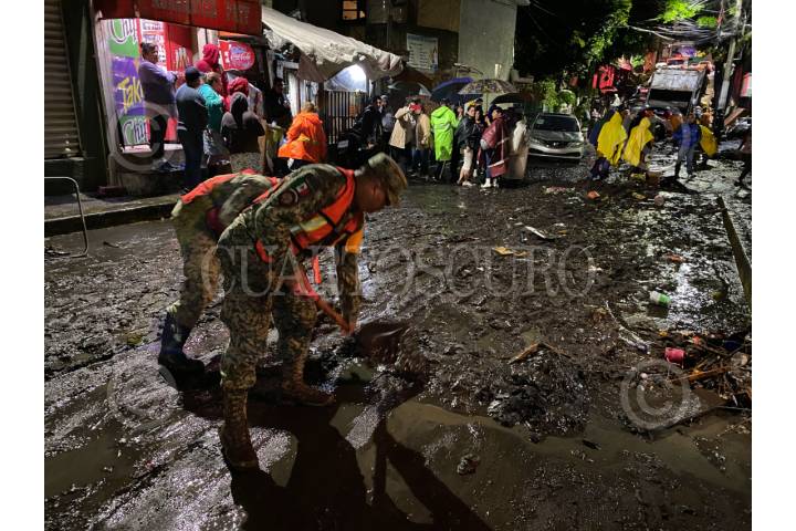 TEJUPILCO, ESTADO DE MÉXICO, 30AGOSTO2024.- Habitantes de Tejupilco, Guardia Nacional, Ejército, Policía estatal realizan labores de limpieza en la comunidad de Rincón de López 3ra y 4ta sección, afectada por el desbordamiento de un río que aumentó su nivel a causa de la lluvia intensa, arrastrando 21 automóviles, 3 motocicletas y afectando más de 400 casas. FOTO: CRISANTA ESPINOSA AGUILAR /CUARTOSCURO.COM