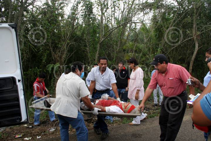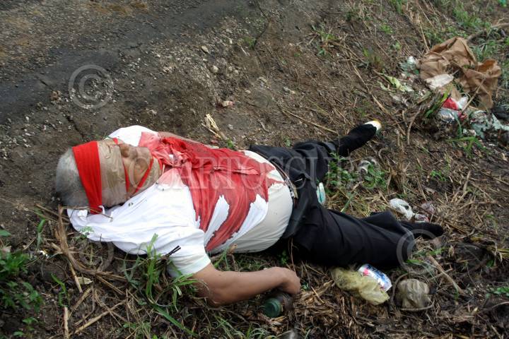 JALAPA, TABASCO, 16ENERO2008.- Un ejecutado fue encontrado sobre el camino vecinal del ejido Aquiles Serdan, la cual conduce al municipio de Macuspana. El hoy occiso presentava rastros de tortura, con el rostro vendado y con cinta canela, ademas que vestia descalzo. FOTO: MARCO POLO GUZMÁN HERNÁNDEZ/