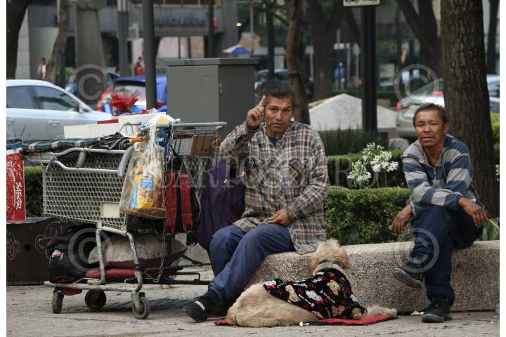 CIUDAD DE MÉXICO, 16MAYO2019.- Dos hombres en situación vulnerable, descansan de trasladar de un lugar a otro sus pertenencias sobre un carro de supermercado. FOTO: ROGELIO MORALES /CUARTOSCURO.COM