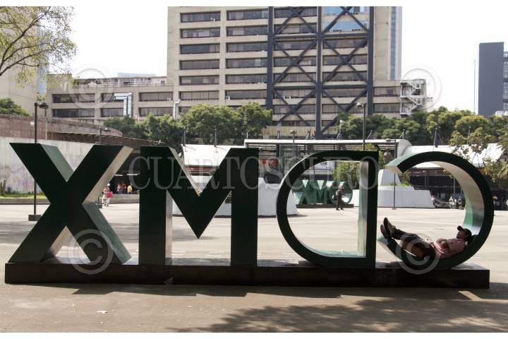 CIUDAD DE MÉXICO, 18AGOSTO2019.- Hombre duerme sobre una de las letras del logo de la CDMX ubicado en la Glorieta de los Insurgentes. FOTO: ROGELIO MORALES /CUARTOSCURO.COM