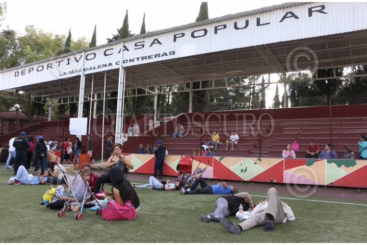 CIUDAD DE MÉXICO, 15OCTUBRE2019.- Vecinos de la alcaldía Magdalena Contreras, descansan acostados sobre el pasto artificial, esto mientras esperan la llegada de Claudia Sheinbaum, Jefa de Gobierno de la ciudad. FOTO: ROGELIO MORALES /CUARTOSCURO.COM