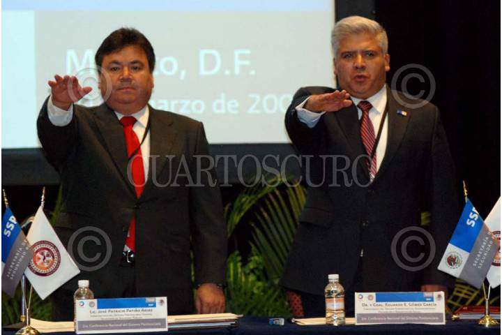 MÉXICO, D.F., 30MARZO2009.- Se instaló la Conferencia Nacional del Sistema Penitenciario como la tercera de las cuatro conferencias que establece la Ley General del Sistema Nacional de Seguridad Pública. En la imagen, el subsecretario del Sistema Penitenciario Federal, José Patricio Patiño Arias, y el comisionado del organismos administrativo desconcentrado de prevención y de readaptación social, Eduardo Enrique Gómez García. FOTO: SSPF/CUARTOSCURO.COM