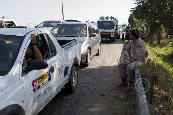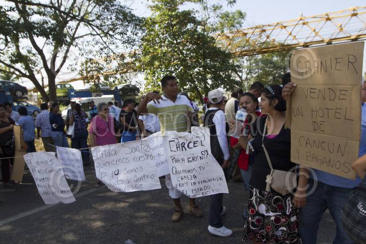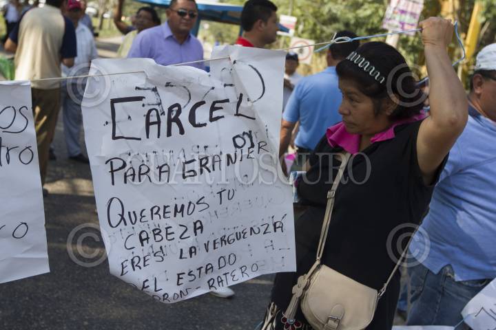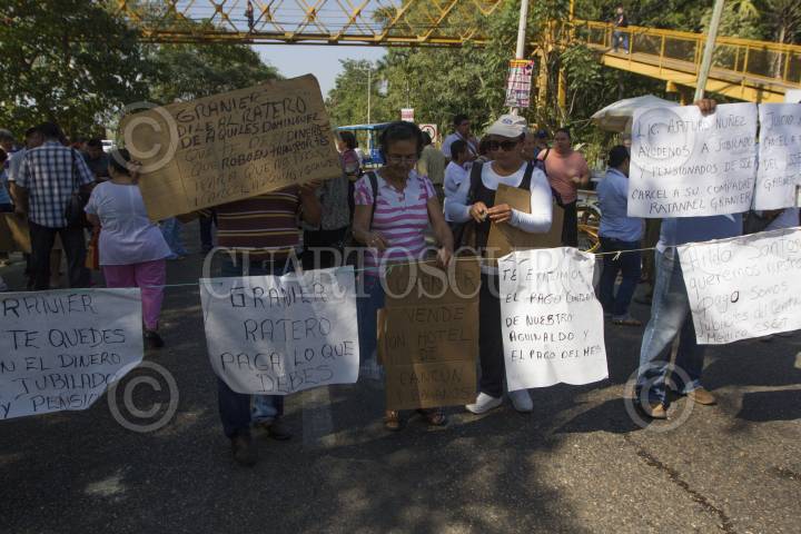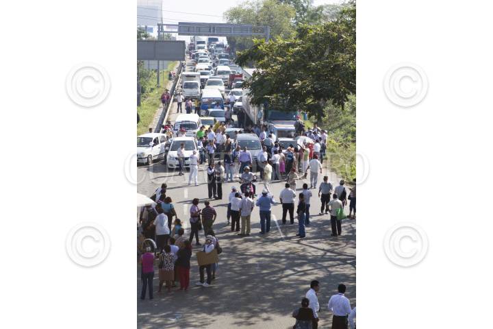 VILLAHERMOSA, TABASCO, 28NOVIEMBRE2012.- Jubilados y pensionados de diferentes direcciones y secretarias locales bloquearon la carretera federal Villahermosa-Cárdena, a la altura del puente de los Monos, para exigir el pago de sus aguinaldos y mensualidades. En esta manifestación mostraron pancartas con distintas leyendas del descontento que tienen con el gobernador Andrés Granier Melo, la protesta causo un intenso caos vial y cientos de personas que intentaban salir de la capital tabasqueña quedaron varados. FOTO: MARCO POLO GUZMÁN HERNÁNDEZ /CUARTOSCURO.COM