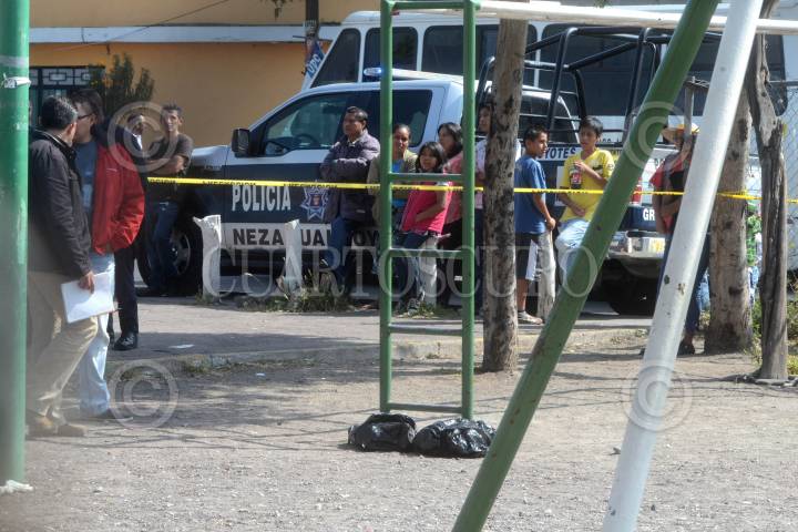 NEZAHUALCÓYOTL, ESTADO DE MÉXICO D; 09NOVIEMBRE2013.- El cuerpo de una mujer fue hallado en trozos al interior de bolsas en un parque de diversiones para niños, que está ubicado en el camellón de las calles de John F Kennedy entre calle 10 y 8 colonia Las Águilas en Nezahualcóyotl Estado de México. Peritos de este lugar acudieron para tomar conocimiento del hallazgo y trasladar los restos al anfiteatro correspondiente. FOTO: LUIS CARBAYO /CUARTOSCURO.COM