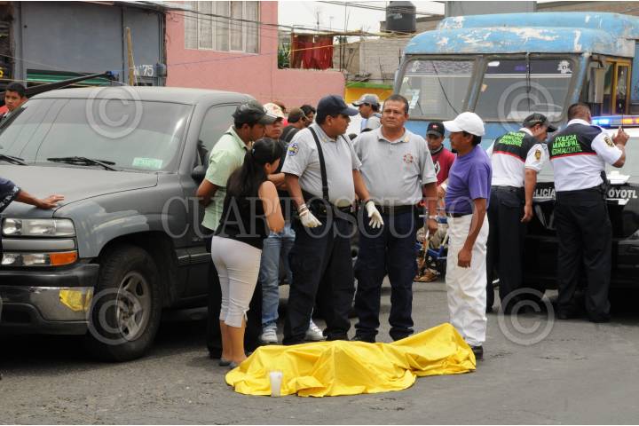 CIUDAD NEZAHAULCOYOTL, ESTADO DE MÉXICO, 22ABRIL2010.- Una persona perdió la vida, después de ser arrollado por un camión del trasporte público sobre la avenida Chimalhuacan casi esquina con calle 7 en la colonia el Barco. FOTO: LUIS CARBAYO/CUARTOSCURO.COM