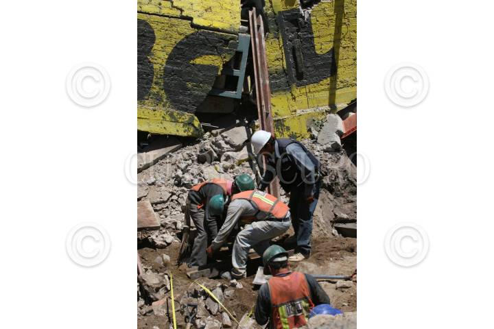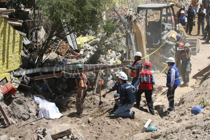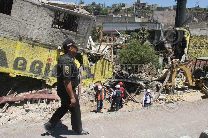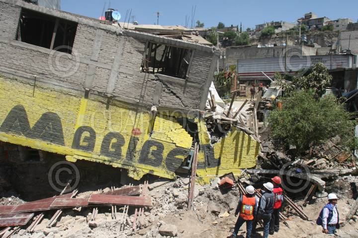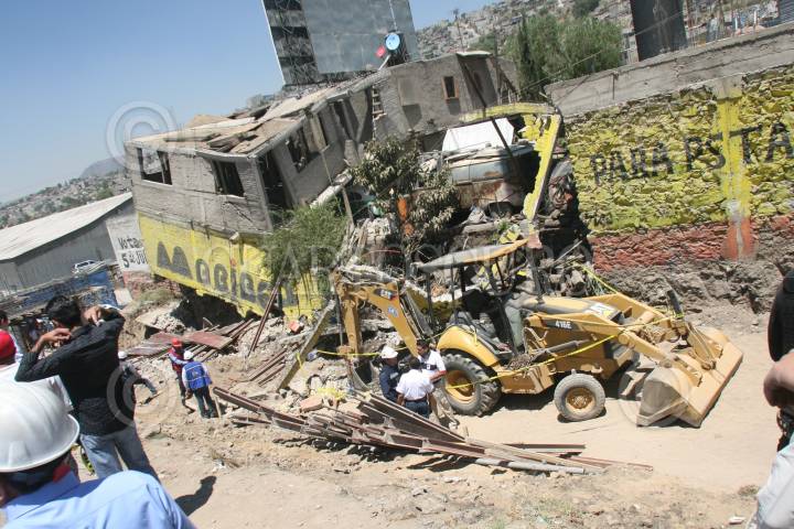 ECATEPEC, ESTADO DE MÉXICO, 06MAYO2010.- Dos hombres que trabajaban en las obras de la lateral de la autopista México-Pachuca, perdieron la vida después de desplomarse una construcción ubicada la colonia la Bellavista en el municipio de Ecatepec, dos trabajadores más resultaron lesionados y fueron trasladados por elementos de la Cruz Roja. Elementos de rescate de diversas corporaciones realizaron el rescate de los cuerpos. FOTO: SAÚL LÓPEZ/CUARTOSCURO.COM