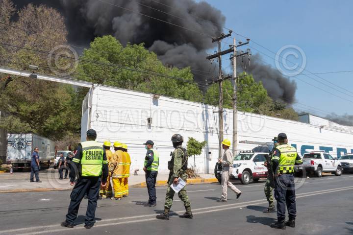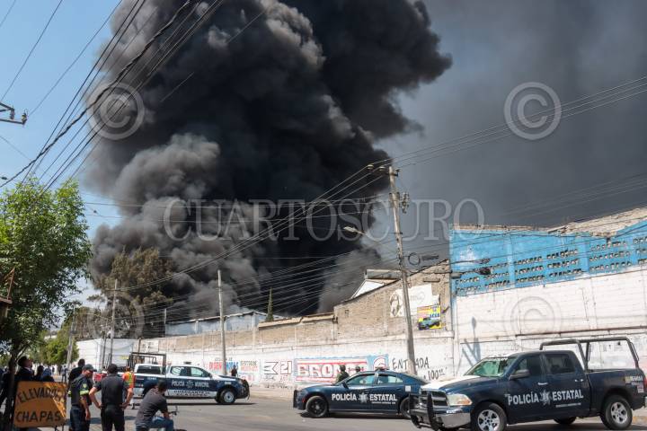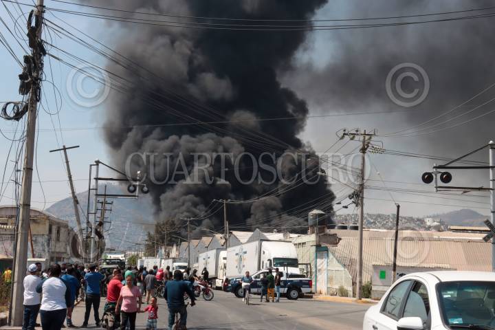 Se registró un fuerte incendio de productos de plástico en la colonia Rústica Xalostoc, Ecatepec.No se registraron lesionados.