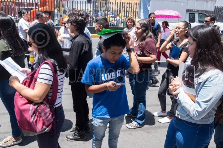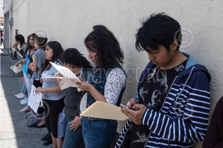 CIUDAD DE MÉXICO, 02JUNIO2018.- Pese las altas temperaturas, cientos de jóvenes la mayoría acompañados por sus familiares comenzaron a hacer filas desde temprana hora a las afueras de las instalaciones de la Universidad Latina donde se realizaría el segundo examen de ingreso a la UNAM. FOTO: ANDREA MURCIA /CUARTOSCURO.COM