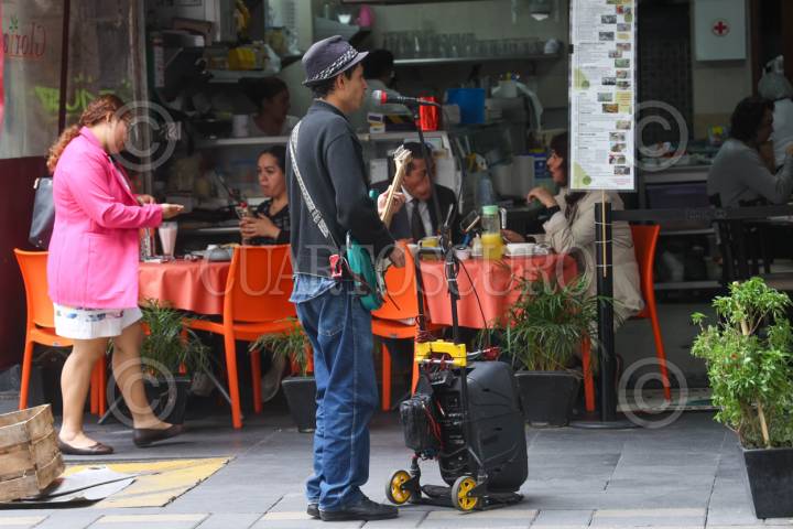 CIUDAD DE MÉXICO, 09JULIO2025.- Joven música toca a Elvis Presley en restaurantes de la calle Independencia para ganar dinero. FOTO: MOISÉS PABLO/CUARTOSCURO.COM
