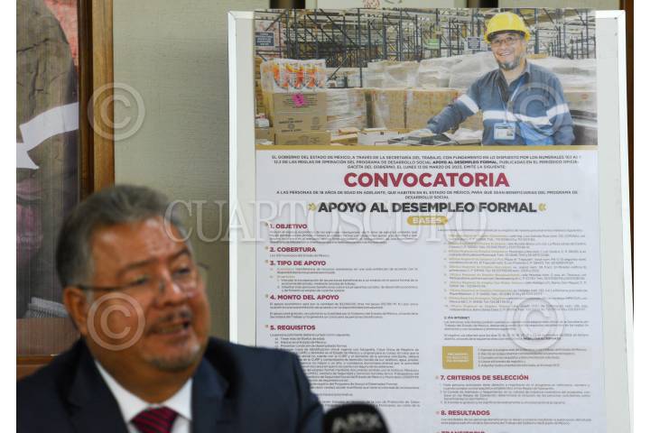 TOLUCA, ESTADO DE MÉXICO, 16NOVIEMBRE2023.- Norberto Morales Poblete, Secretario del Trabajo en el Estado de México presentó la convocatoria de “Apoyo al Desempleo”, brindarán un apoyo de 3 mil pesos a personas que han perdido su empleo en los últimos meses, dando prioridad a personas repatriadas, condición especial, padezcan alguna enfermedad crónico degenerativa o sean cuidadoras de menores de edad. FOTO: CRISANTA ESPINOSA AGUILAR /CUARTOSCURO.COM