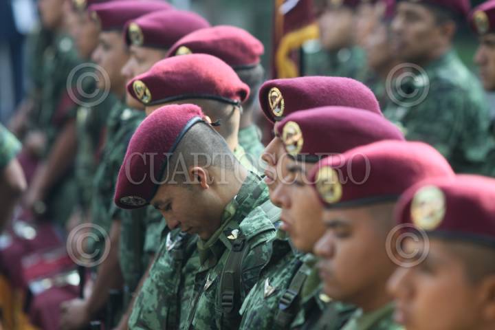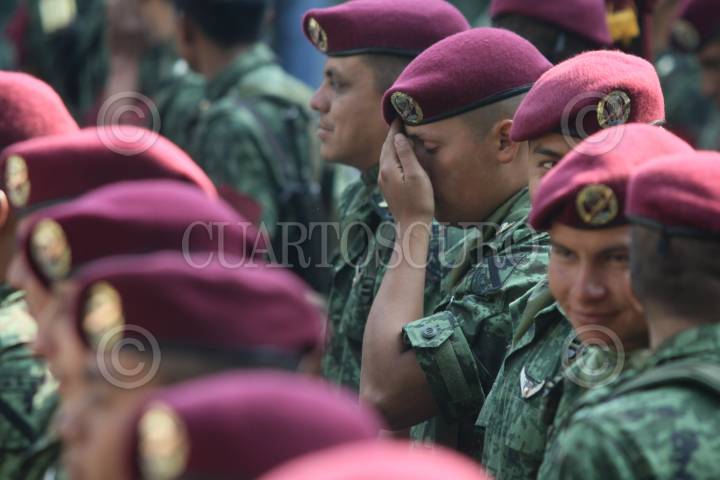 MÉXICO, D.F., 29ABRIL2011.- Los soldados pertenecientes al cuerpo de paracaidistas del Ejercito Mexicano en actitudes relajadas previo a la ceremonia "Izamiento del labaro patrio en la Filipinas y muerte de los pilotos de la Fuerza Aérea Expedicionaria Mexicana escuadrón 201, en 1915" en el Bosque de Chapultepec. FOTO: MOISÉS PABLO/CUARTOSCURO.COM