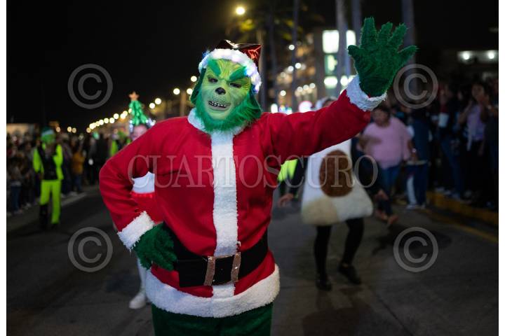 VERACRUZ, VERACRUZ,17DICIEMBRE2023.- Una persona vestida de Grinch, saluda a la cámaras previo al inicio del desfile navideño en el puerto veracruzano. FOTO: VICTORIA RAZO/ CUARTOSCURO.COM