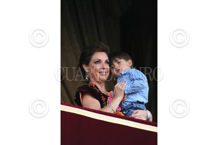 MÉXICO, D.F. 16SEPTIEMBRE2006.- Martha Sahagún de Fox y Vicentillo en el balcón presidencial momentos antes del inicio del desfile. FOTO: PAOLA HIDALGO/CUARTOSCURO.COM