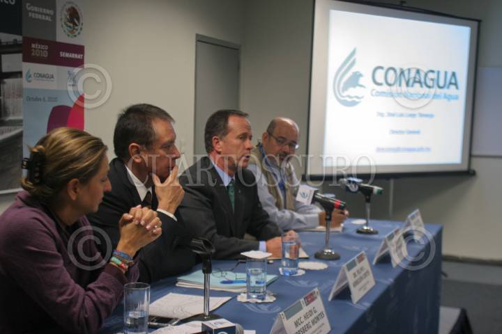 MÉXICO, D.F., 06OCTUBRE2010.- Heidi Storsbergn Montes, coordinadora de comunicación, Felipe Arreguin Cortés, Subdirector Tecnico de CONAGUA, José Luis Lueje Tamargo, titular de la CONAGUA y Adrian Vazquez, Coordinador del Servicio Meteorológico Nacional en conferencia de prensa donde dio a conocer la situación de las presas en México y el pronostico meteorológico que prevalece en el país. FOTO: SAÚL LÓPEZ/CUARTOSCURO.COM