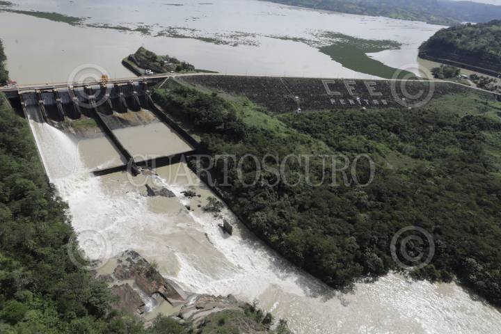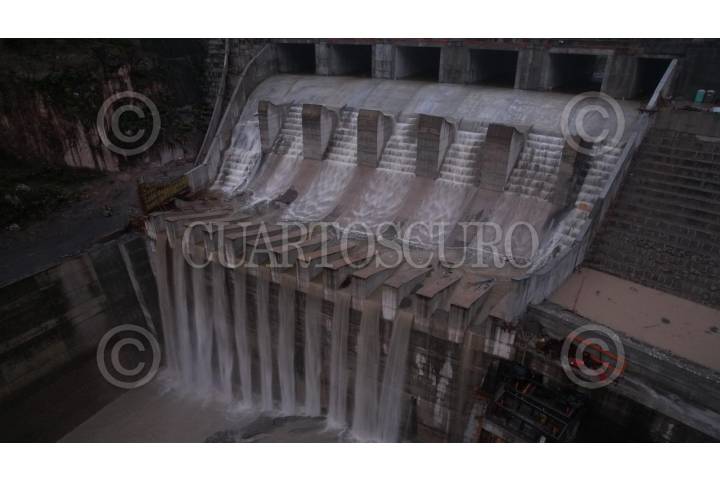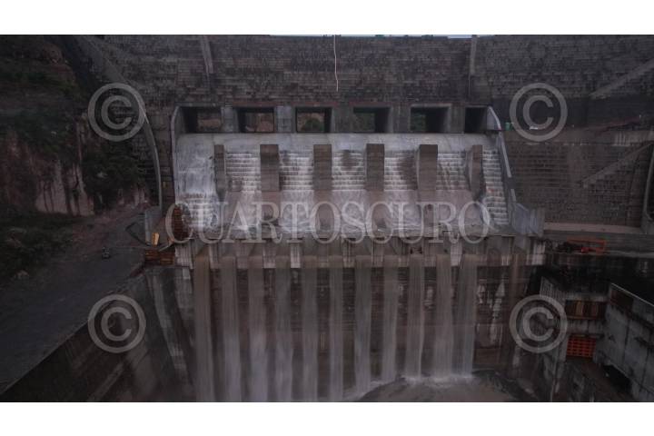 CAÑADAS DE OBREGÓN, JALISCO, 27JULIO2024.- La Comisión Nacional del Agua (CONAGUA)a través del Organismo de Cuenca Lerma Santiago Pacífico (OCLSP), informa que el temporal de lluvias y el cierre hidráulico de la presa El Zapotillo alcanzó su nivel de aguas máximas ordinarias (NAMO), sin que ello represente riesgo para las poblaciones aledañas. A su vez, la NAMO comenzó el desfogue del excedente. FOTO: PRESIDENCIA/CUARTOSCURO.COM