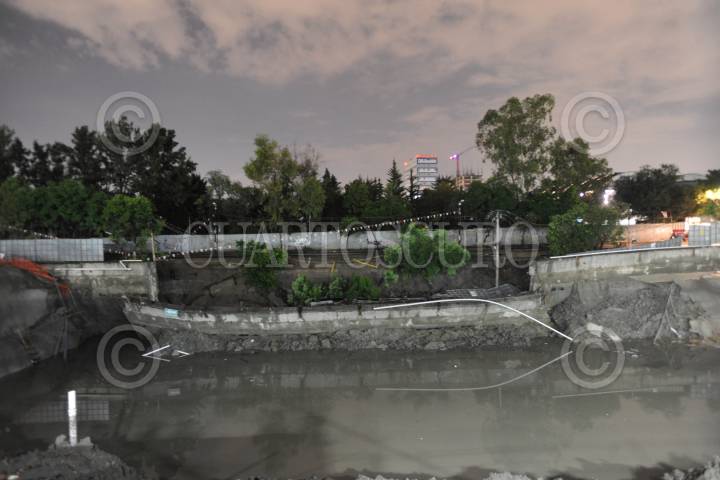 CIUDAD DE MÉXICO., 15AGOSTO2017.- Aproximadamente 25 metros de Banqueta y de pavimento, desgajaron a una obra en construcción Sobre calle 4 entre Sabino y Naranjo de la colonia Del Gas, al parecer por el reblandecimiento de tierra por las lluvias. FOTO: LUIS CARBAYO 7CUARTOSCURO.COM