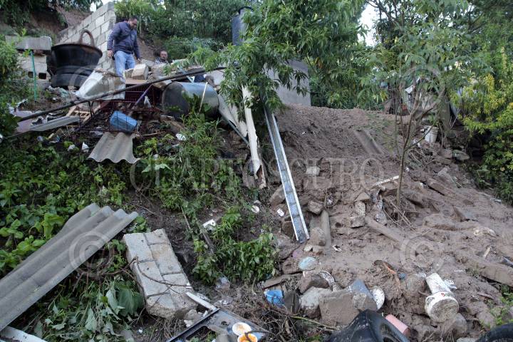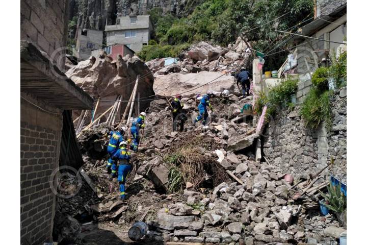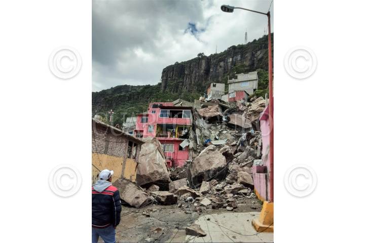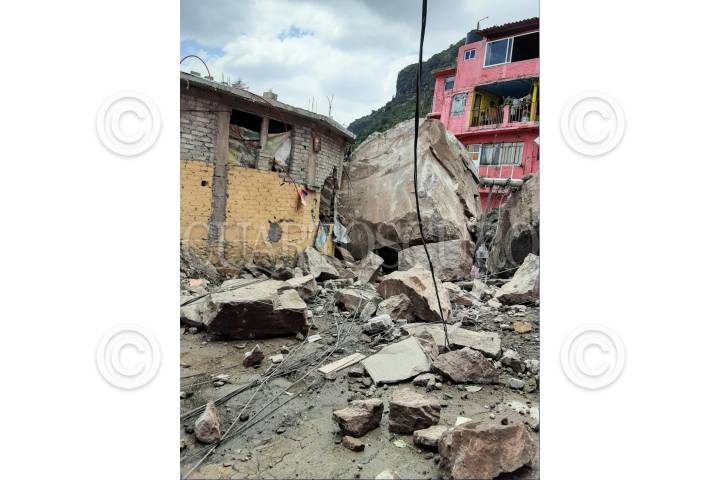 Desgajamiento de una roca enorme en viviendas del cerro del Chiquihuite
