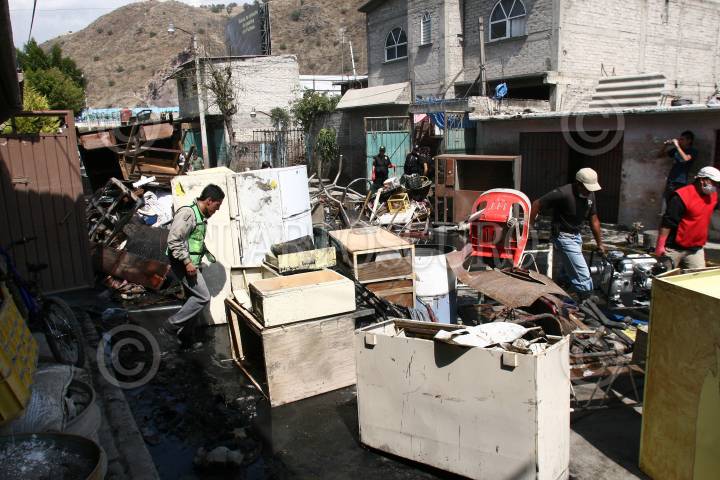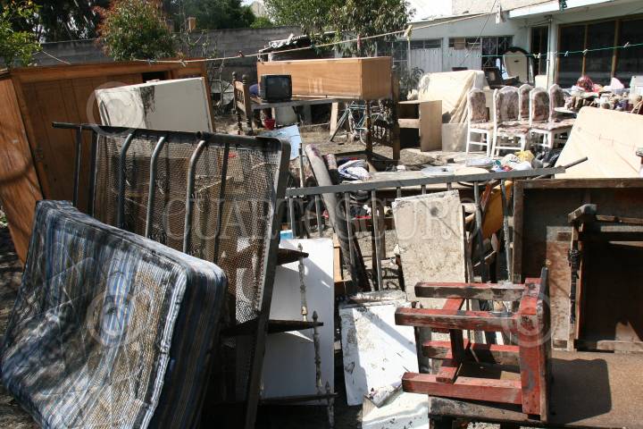 VALLE DE CHALCO, ESTADO DE MÉXICO, 15FEBRERO2010.- Habitantes de la colonia San Isidro y Avandaro comenzaron el día de hoy con la limpieza de casas, cisternas, enseres domésticos, ropa, despensa, maquinaria de trabajo, documentos personales y automóviles que resultaron dañados tras la inundación que provocó el desbordamiento del Canal de la Compañía. Las familias afectadas exigen que sea implementado el Fonden (Fondo de Desastres Naturales). FOTO: SAÚL LÓPEZ/CUARTOSCURO.COM