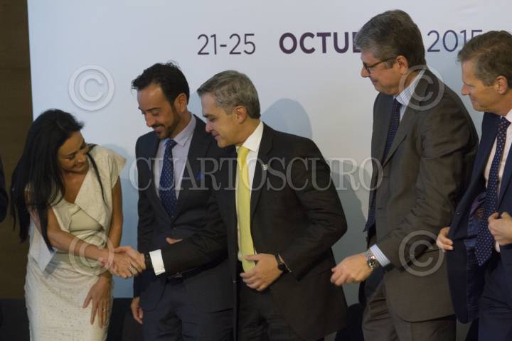 MÉXICO, D.F., 24JUNIO2015.- Emilio Cabrero, director del Design Week México, le entregó un reconocimiento a Miguel Ángel Mancera, Jefe de Gobierno, en el marco de la presentación de la séptima edición de Design Week México, que se realizó en el Museo Tamayo Arte Contemporáneo. Este año este encuentro de diseño de talla internacional tendrá como invitado al país italiano y al estado de Chiapas. FOTO: MOISÉS PABLO /CUARTOSCURO.COM
