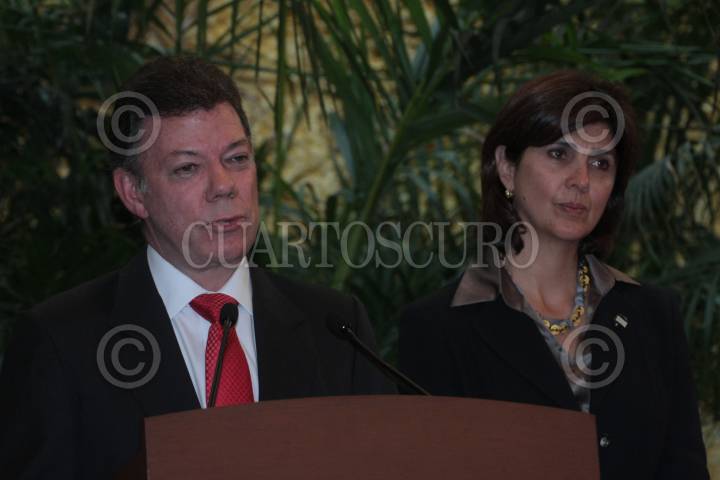 MÉXICO, D.F., 22JULIO2010.- Juan Manuel Santos; presidente electo de Colombia y María Ángeles Holguín; Ministra designada de relaciones Exteriores. FOTO: MARCO POLO GUZMÁN HERNÁNDEZ/CUARTOSCURO.COM