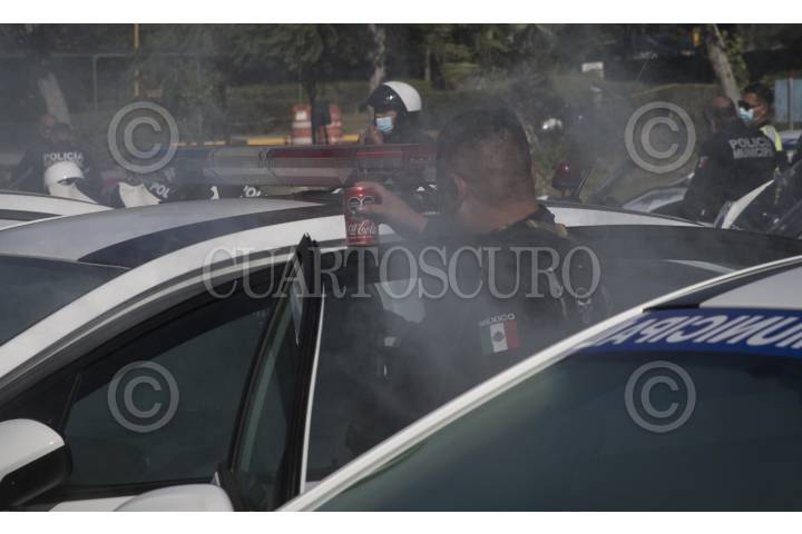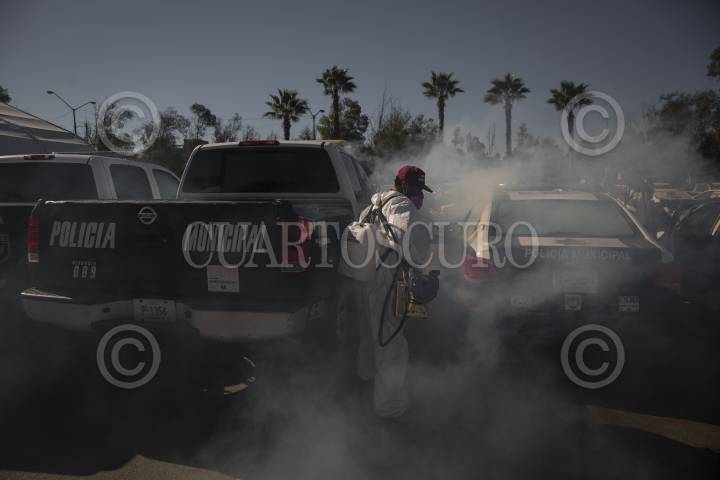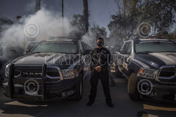 Unidades de la Policía Municipal fueron desinfectadas para evitar riesgos de contagios masivos de Covid-19