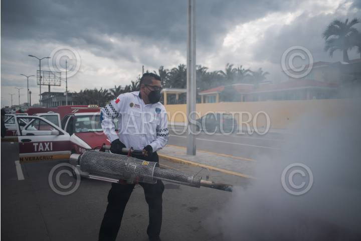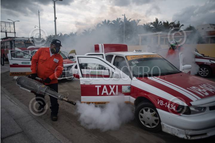 El gobierno local ha implementado brigadas de sanitización en transporte público ante el incremento de casos de Covid-19, en el estado de Veracruz.