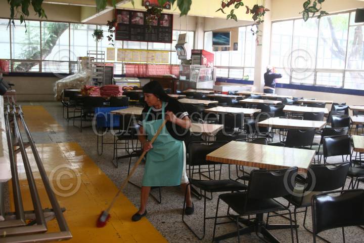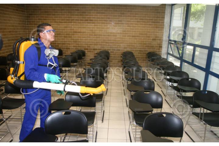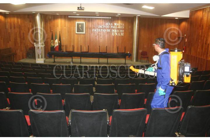 MÉXICO, D.F., 05MAYO2009.- Trabajadores de sanitizacion y limpieza de la UNAM trabajan a marchas forzadas para desinfectar, salones, laboratorios, auditorios, bibliotecas, oficinas, sanitarios, libros, computadoras, areas deportivas, y espacios publicos de Ciudad Universitaria, debido al reinicio de actividades el proximo 7 de Mayo. Estas medidas de sanidad, forman parte de las recomendaciones que indico la Secretaria de Salud, debido al brote de influenza humana que vive la capital. FOTO: SAUL LOPEZ/CUARTOSCURO.COM