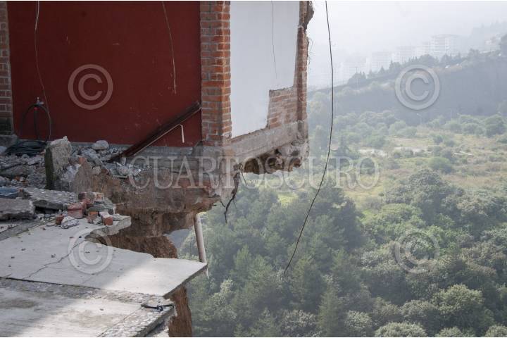MÉXICO, D.F., 23NOVIEMBRE2015.- Casa ubicada en Altavista 111 de Santa Fe, la cual será demolida en los próximos días luego de los deslaves que se han registrado en las últimas semanas. Los propietarios de la casa, Carlos y Alejandro Rosete, indicaron que su casa se encuentra desde hace 35 años y negaron su responsabilidad en los deslaves, maquinaria de Protección Civil empezó a trabajar removiendo escombros y tierra que han caído. FOTO: DIEGO SIMÓN SÁNCHEZ /CUARTOSCURO.COM