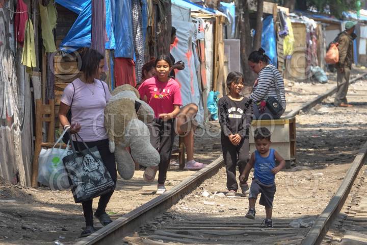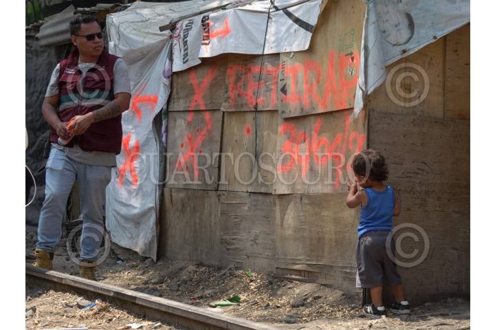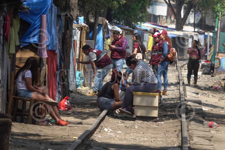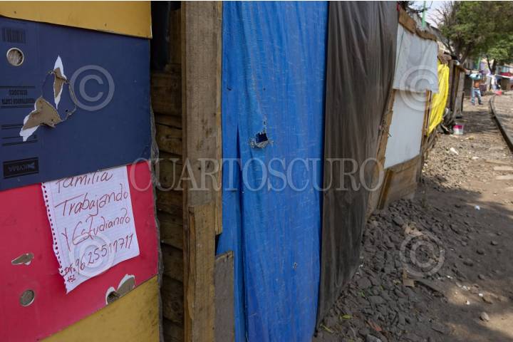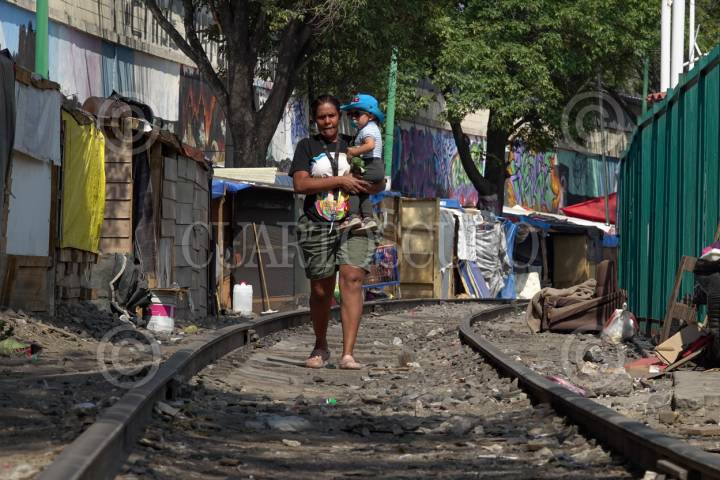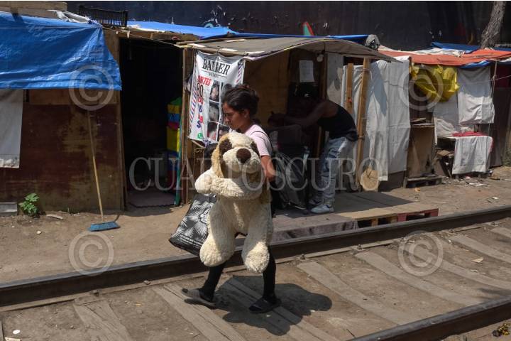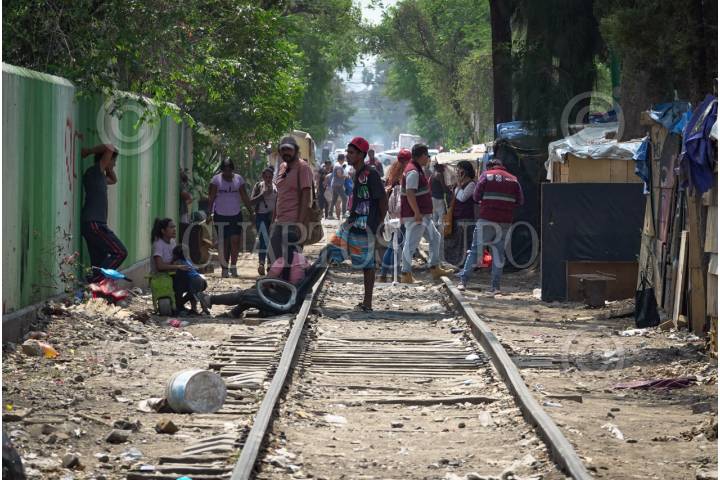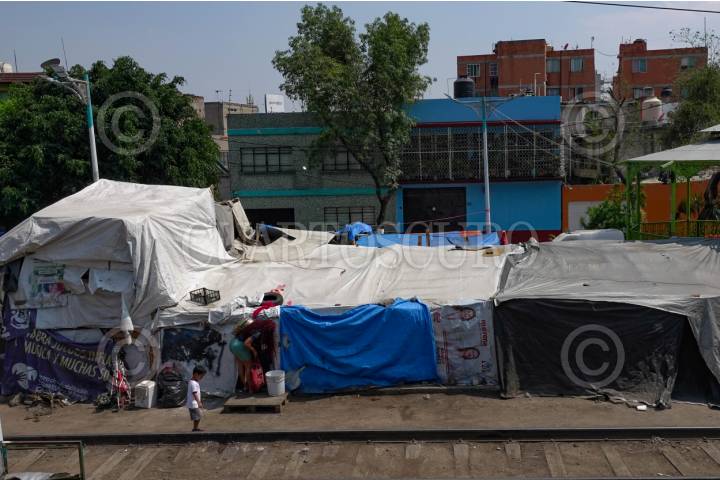 CIUDAD DE MÉXICO 29ABRIL2025.- Pese a brindarles un albergue para su estadía migrantes que mantienen un campamento en la vías de tren en la colonia Vallejo prefieren quedarse en el lugar, con casas improvisadas de madera cartón y plástico, esto debido a la desconfianza hacia el gobierno por temor a qué los regresen a sus países de origen o a Chiapas. FOTO: ROGELIO MORALES CUARTOSCURO.COM