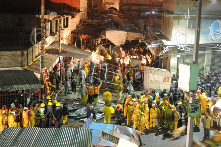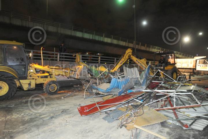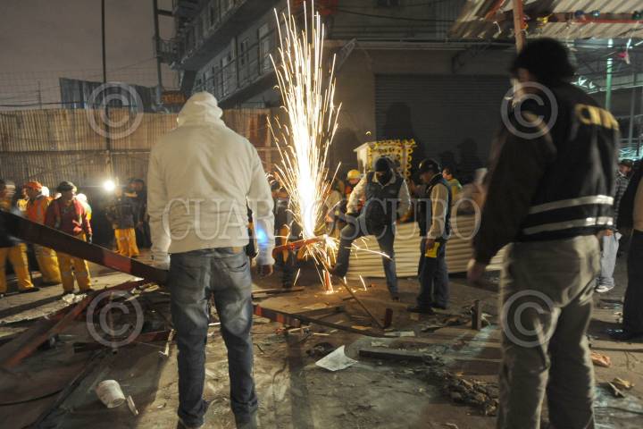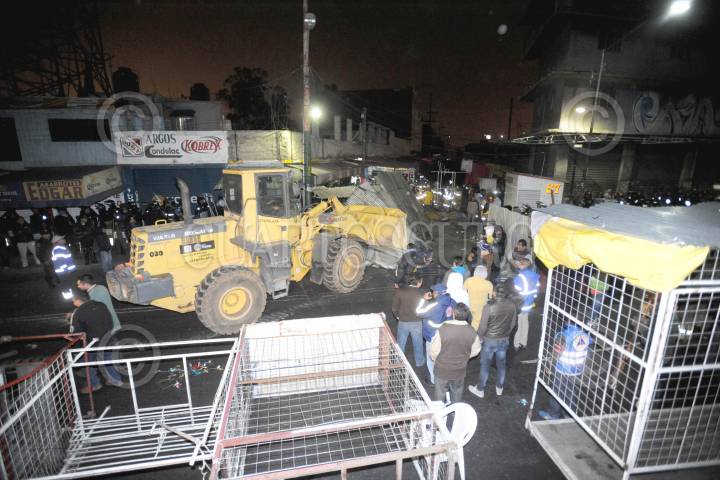 MÉXICO D.F; 26DICIEMBRE2013.- Mediante fuerte operativo armado con 2100 elementos aproximadamente entre Policías y personal de GDF, fue desmantelado el Mercado conocido como “El nuevo Tepito”, ubicado en calles del Pueblo de Santa Martha Acatitla en Iztapalapa. Apoyados con varios camiones y trascabos que transportaron el material con que estaba hecho este mercado semifijo. FOTO: LUIS CARBAYO /CUARTOSCURO.COM