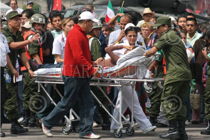 MÉXICO D.F., 16SEPTIEMBRE2008.- Una mujer se desmayo durante el desfile militar que se realiza cada año prar conmemorar la independencia de México FOTO:RICARDO CASTELAN /CUARTOSCURO.COM