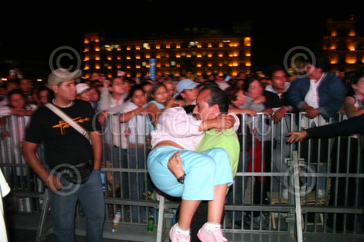 MÉXICO, D.F. 28ABRIL2007.- Algunos asistentes al concierto que tuvo lugar en el Zócalo capitalino sufrieron desmayos debido al exceso de público. FOTO: PAOLA HIDALGO/CUATOSCURO.COM