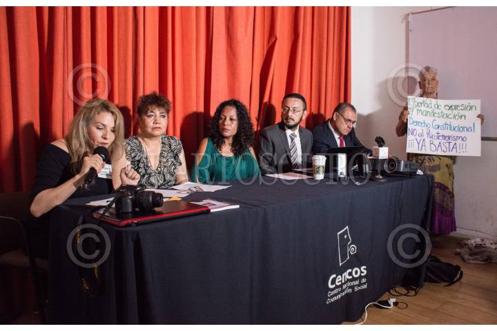CIUDAD DE MÉXICO, 22MAYO2017.- La activista María Guadalupe Vicencioy miembros de la organización Canadiense de derechos humanos y personas afectadas por el caso “Wallace” ofrecieron una conferencia de prensa para exponer y desmentir el supuesto ataque a Isabel Miranda de Wallace durante la marcha “Vibra México” realizada el pasado 12 de febrero, y la responsabilizan de los ataques que han sufrido luego de las declaraciones de Wallace Miranda, en donde las acusa de planear un ataque en su contra y de ser miembros de la banda criminal de “Los Zodiaco”. FOTO: MARIO JASSO /CUARTOSCURO.COM