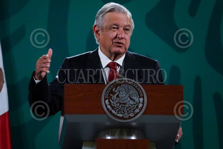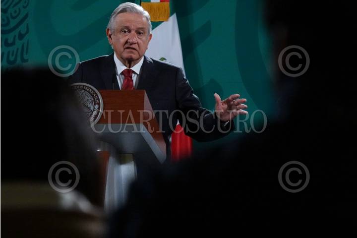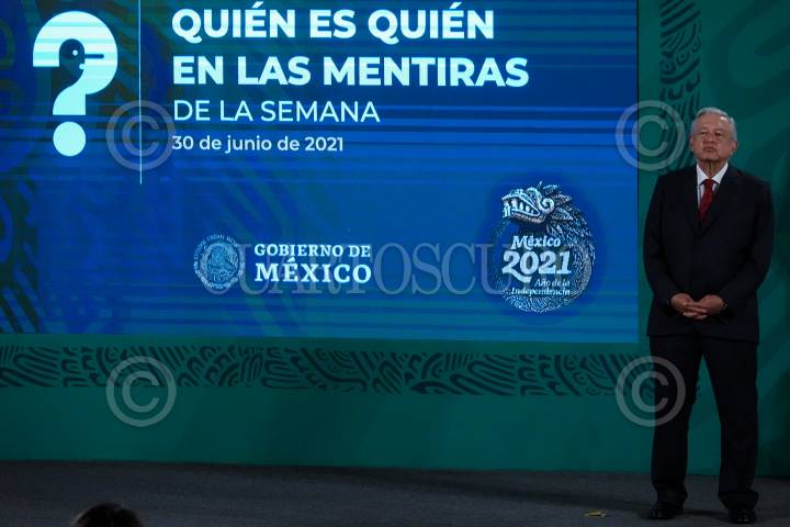 Andrés Manuel López Obrador durante la conferencia matutina donde presentó la nueva sección "Quién es quién en las mentiras de la semana".