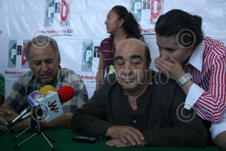 SAN LUIS POTOSÍ, SAN LUIS POTOSÍ, 05JULIO2009.- Cruz Lopez dirigente de la Confederación Nacional Campesina y el senador Jesus Muriño, durante conferencia de prensa donde desmintieron que el candidato del PAN Alejandro Zapata sea el ganador a la gobernatura de esta entidad. FOTO: RICARDO CASTELAN/CUARTOSCURO.COM
