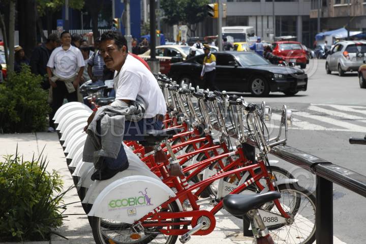 MÉXICO, D.F., 16JULIO2014.- Un hombre toma un descanso sobre unas bicis de una estación de Ecobici. FOTO: MOISÉS PABLO /CUARTOSCURO.COM