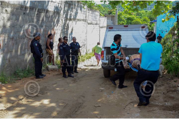 ACAPULCO, GUERRERO, 19AGOSTO2013.- Una persona fue asesinada, desollada y torturada en el interior de una vivienda abandonada en la Col. Ampliación. Autoridades locales acordonaron la zona para proceder a la investigación, posteriormente el cuerpo fue llevado en calidad de desconocido al servicio médico forense para realizar una necropsia de ley. FOTO: BERNANDINO HERNÁNDEZ / CUARTOSCURO.COM