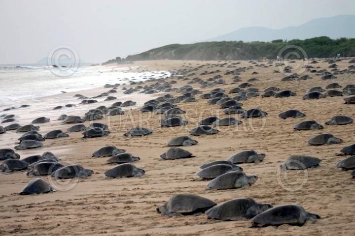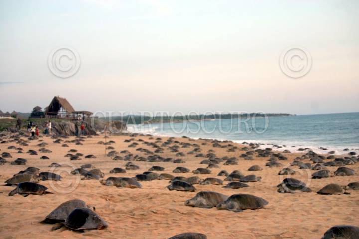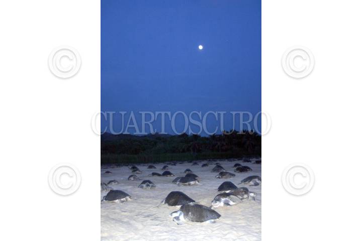 AQUILA, MICHOACÁN, 29NOVIEMBRE2009.- Una mega arribazón de tortugas golfinas, gigantesca, nunca vista, fue la que ocurrió en la playa de Ixtapilla en el municipio de Aquila, misma que fue calificada por los indígenas nahuas voluntarios del campamento tortuguero, como “la madre de todas las arribazones” registradas en esa marina de este municipio. Los quelonios de la especie Lepidochelys olivacea o golfina, como mejor se les conoce, iniciaron su arribazón, que llenaron por completo su playa de aproximadamente 800 metros de largo, extendiéndose el varamiento hacia La Majahuita y otras marinas cercanas cuyas arenas en muy corto tiempo fueron saturadas de nidos de tortugas repletos de huevos. La playa de Ixtapilla está ubicada a bordo de carretera en el kilómetro 180 de la costera de Michoacán. FOTO: ANGEL MÉNDEZ/CUARTOSCURO.COM