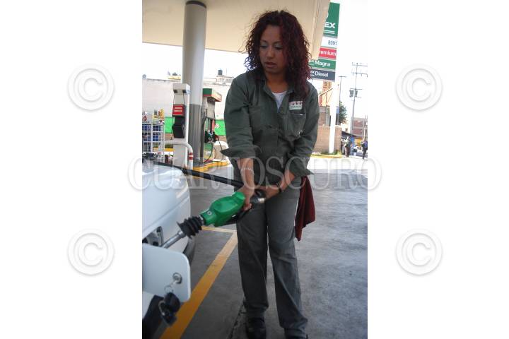 MÉXICO D.F. 07MARZO2007.- En una gasolinera una mujer despacha a el automovil cargando gasolina en la estación. FOTO: GUILLERMO PEREA/CUARTOSCURO.COM