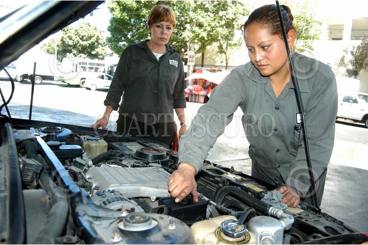 MÉXICO D.F. 07MARZO2007.- En una gasolinera mujeres despachadoras checan el aire del automovil que carga gasolina en la estación. FOTO: GUILLERMO PEREA/CUARTOSCURO.COM
