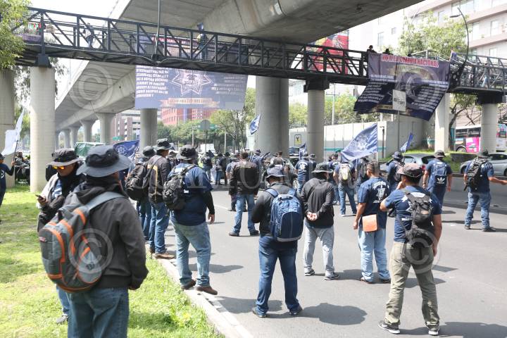 CIUDAD DE MÉXICO, 28AGOSTO2019.- Policías Federales que se han negado a integrarse a la Guardia Nacional, con el argumento de que perderían prestaciones laborales, como antigüedad, se manifestaron bloqueando el Periférico Sur, dirección hacia el norte, para exigir les entreguen sus liquidaciones de ley. FOTO: ARMANDO MONROY /CUARTOSCURO.COM