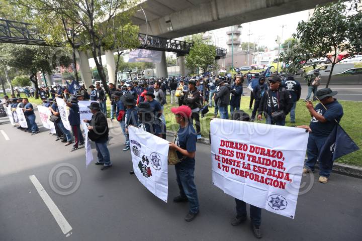 Trabajadores de empresas privadas se manifestaron en el cruce de Avenida Río Churubusco y Añil, como protesta a los despidos generados por la contigencia sanitaria fase 2 por coronavirus (covid-19).