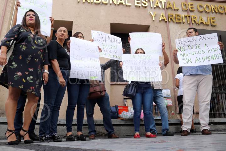 CUERNAVACA, MORELOS, 22OCTUBRE2019.- Trabajadores despedidos del congreso local presentaron una demanda ante el Tribunal Estatal de Conciliación y Arbitraje por despido injustificado. Son 28 trabajadores de confianza y administrativos que estaban adscritos a la asesoría de las diputadas que integran el Frente Progresista de Mujeres o G7, los cuales fueron citados por el área de recursos humanos el 16 de octubre para notificarles que habían sido dados de baja de la nómina. FOTO: MARGARITO PÉREZ RETANA /CUARTOSCURO.COM
