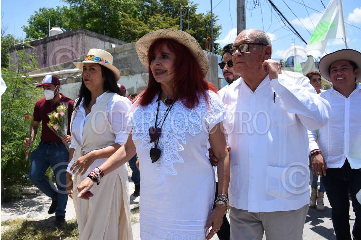 Layda Sansores en la entrega de despensa en las colonias Concordia y el Carmelo por el Día de las Madres